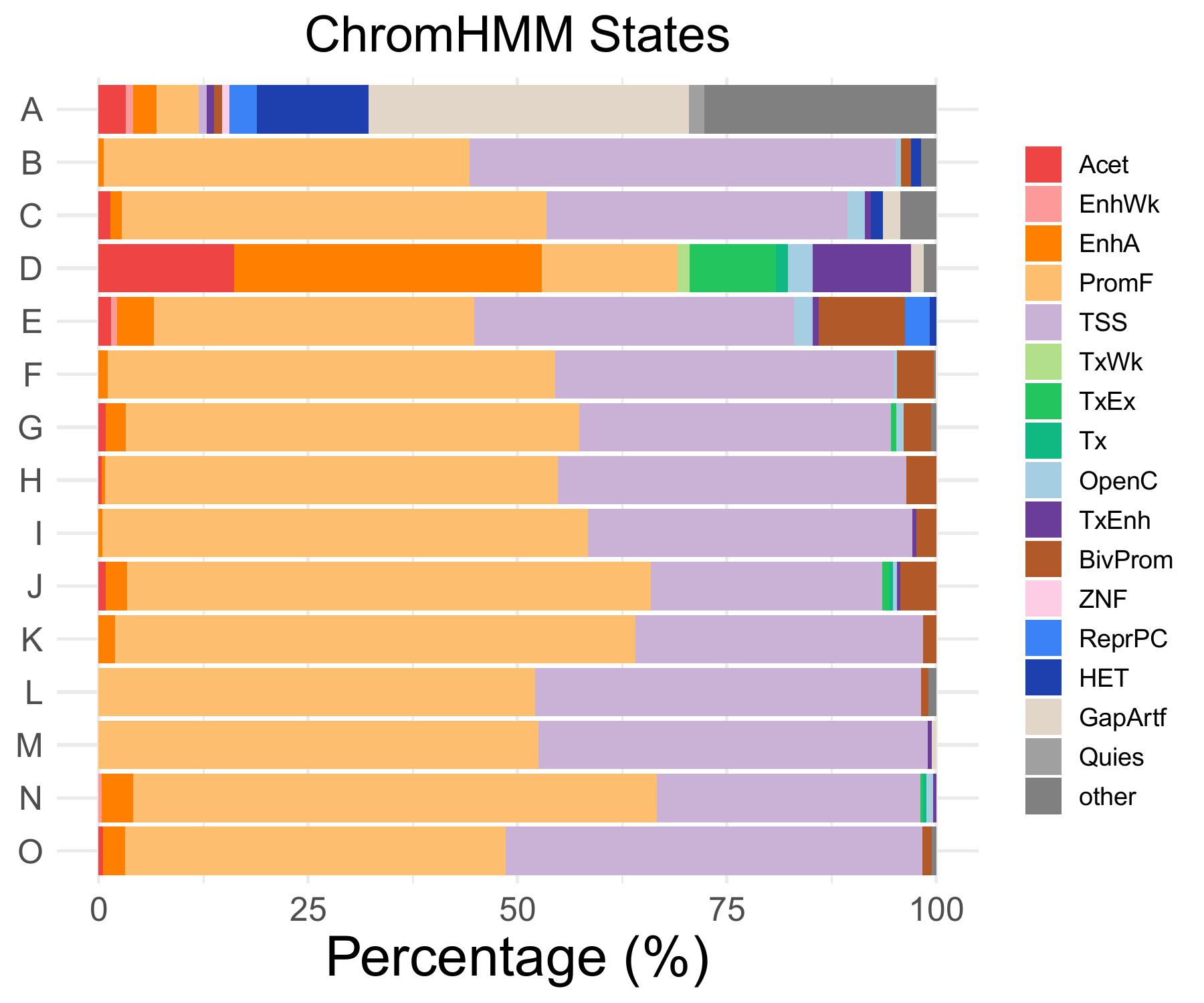 | Cluster | Acet | EnhWk | EnhA | PromF | TSS | OpenC |